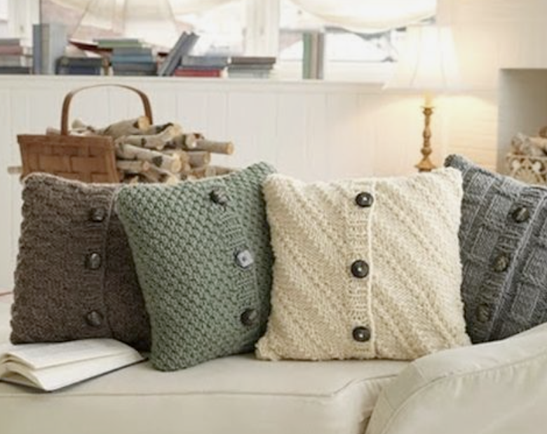 Перешейте старые свитеры в уютные декоративные подушки для дивана или кресла.